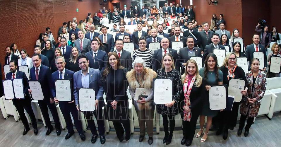 Ciudad de México. - Se llevó a cabo la entrega de títulos de la Maestría en Derecho Electoral, impartida por la Escuela Judicial Electoral (EJE) del Tribunal Electoral del Poder Judicial de la Federación (TEPJF), y coordinada por el Centro de Capacitación y Formación Permanente del Senado de la República (CECAFP), para funcionarios de este organismo legislativo donde se discutieron temas vinculados con la democracia, los partidos políticos, la justicia electoral y sus bases argumentativas, la ética judicial imperante y baluarte del quehacer judicial, el control judicial de la Constitución, entre otros.