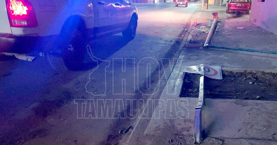 En su desviación, impactó contra un arbotante, una señal de velocidad y una nomenclatura, las cuales derribó, dejando daños materiales al patrimonio municipal.