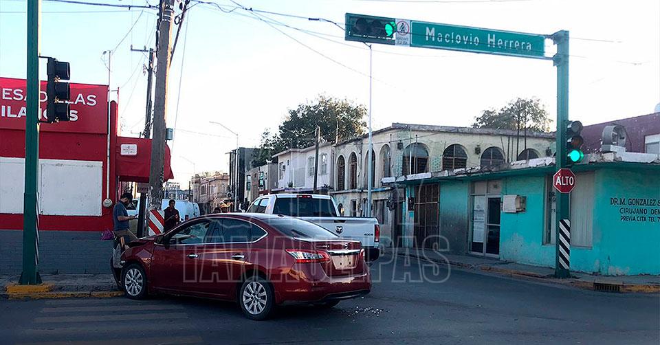 Luis, el conductor de la camioneta iba circulando de poniente a oriente por Maclovio Herrera, y al llegar al cruce Morelos chocó con el automóvil Nissan, de Jesús, quien viajaba de norte a sur.