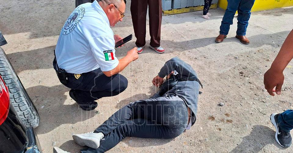 Matamoros, Tamaulipas. - Un adulto mayor de 82 años fue detenido por los elementos viales tras lesionar en choque a un motociclista.