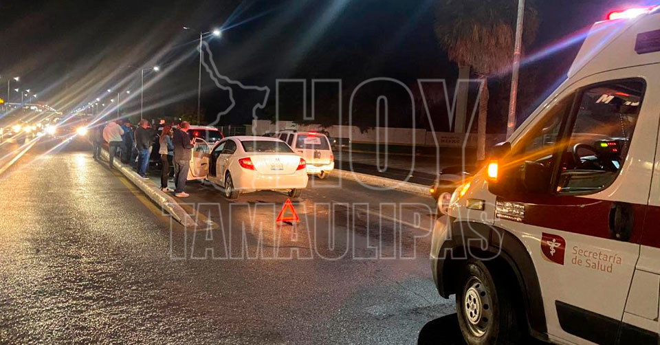Ciudad Victoria, Tamaulipas. - Un choque por alcance con proyección que involucró a siete unidades de fuerza motriz dejó como saldo a cuatro personas lesionadas y cuantiosos daños materiales, en la avenida Tamaulipas.