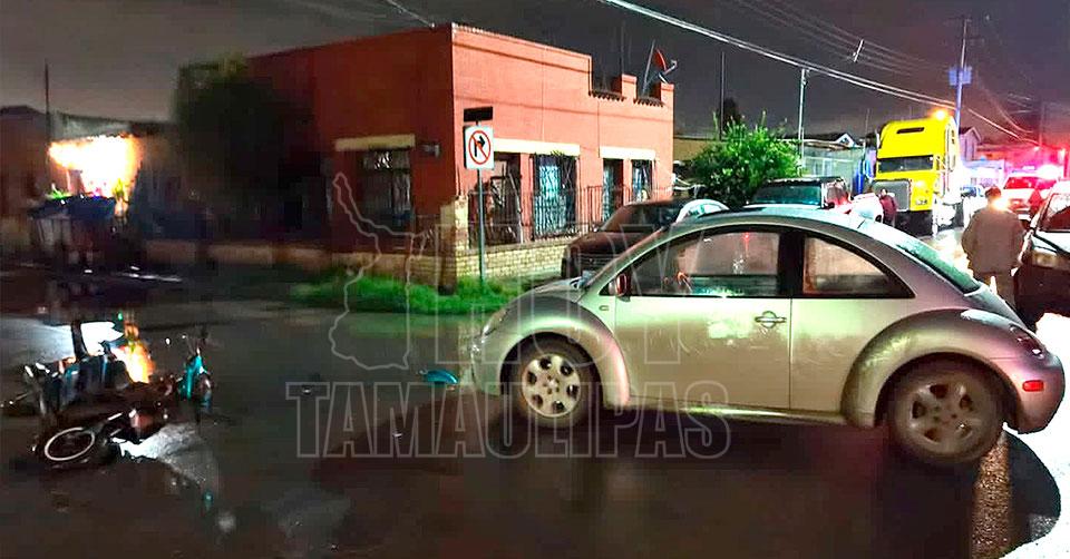 Choque entre moto y auto deja dos heridos en Nuevo Laredo