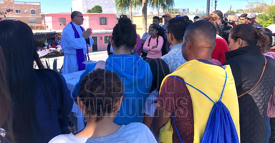 Matamoros, Tamaulipas. - Mientras que algunos migrantes cruzaban de manera ilegal a los Estados Unidos, otros se dedicaban a recibir la bendición de Dios con una misa especial y posteriormente con una posada organizada por la Asociación Ayudándoles a Triunfar.