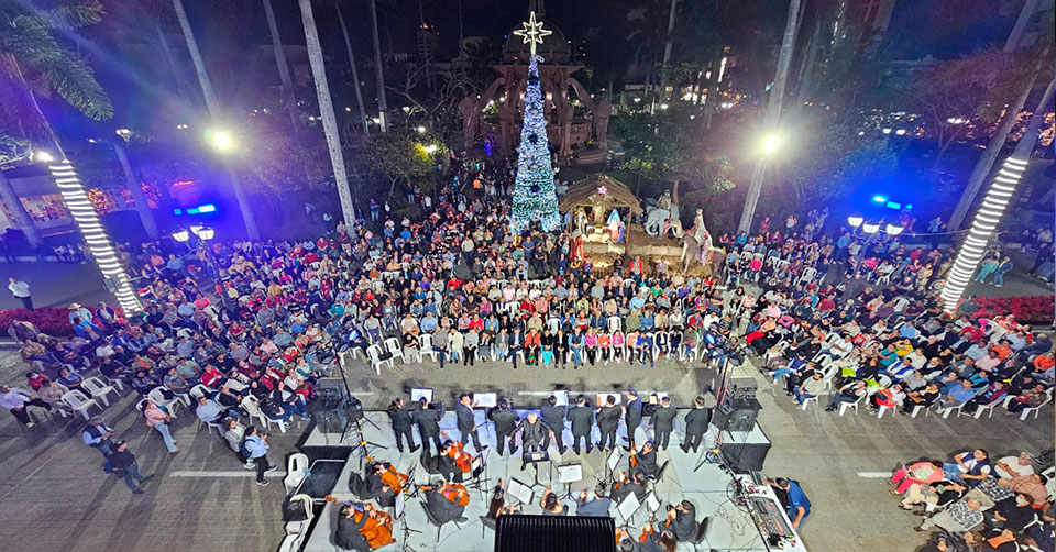 Los 10 Tenores Tamaulipecos, acompañados de la Banda Municipal de Música y del Ensamble Orquestal ELGAR, presentaron un amplio repertorio musical compuesto por melodías regionales, así como los grandes éxitos de la música popular mexicana, y por supuesto temas navideños.