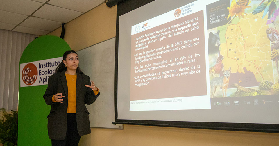 A su vez, María Fernanda Soto Zúñiga, estudiante de la Maestría en Aprovechamiento Sostenible de los Recursos Naturales que se imparte en el IEA, dijo que su trabajo de tesis: Análisis socioecológico para la conservación de recursos naturales dentro del área natural protegida “Paisaje Natural de la Mariposa Monarca”, en Tamaulipas, México, busca conocer las especies de flora y fauna que se están aprovechando en las comunidades, y que son importantes tanto económica como culturalmente.