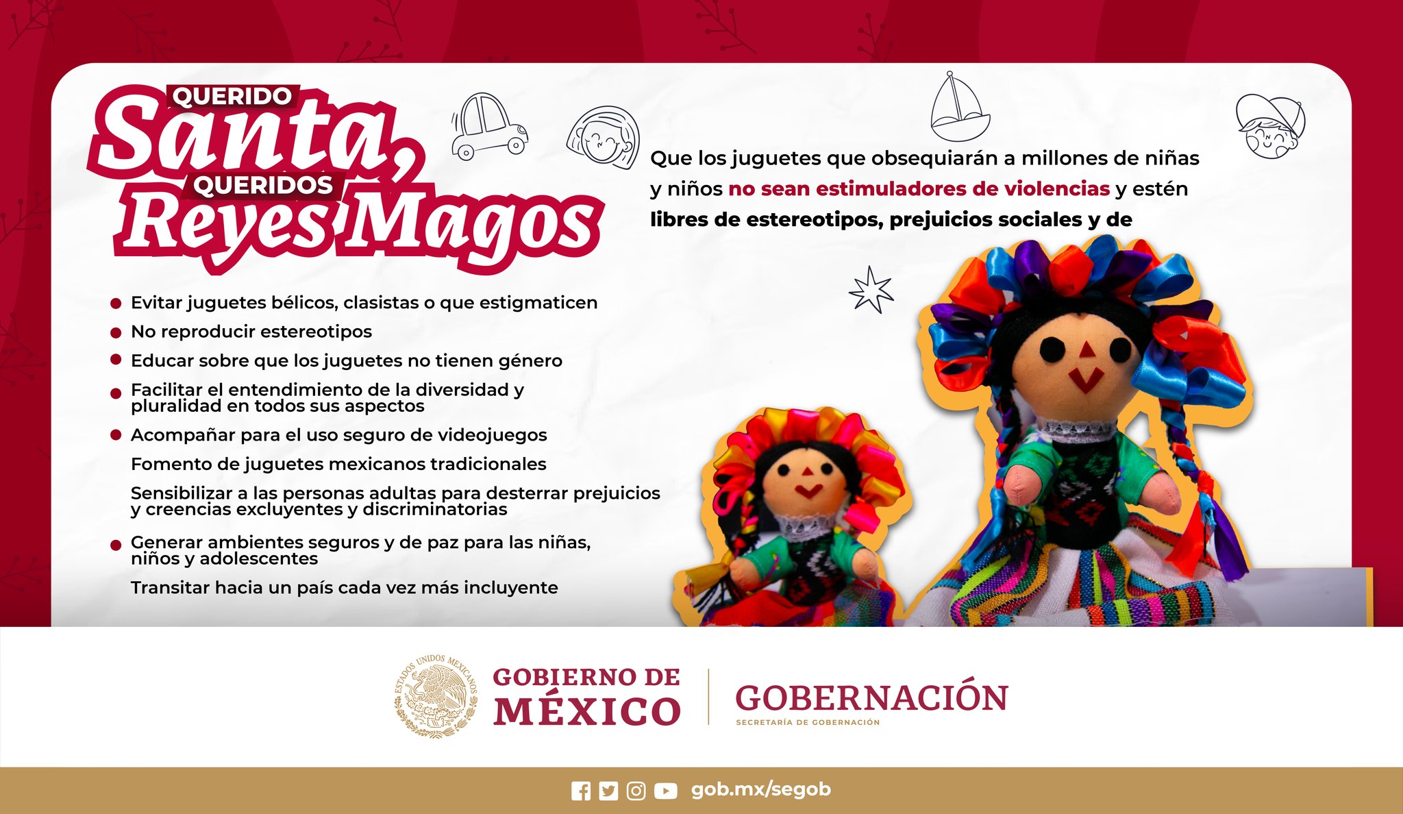 Santa y Los Reyes Magos serán recibidos con los brazos abiertos, y la Secretaría de Gobernación (Segob) les hace un llamado, ya que si bien, el juego es un derecho de las niñas y los niños y una actividad instintiva e imprescindible en su desarrollo, deben ejercerlo en ambientes seguros y de paz.