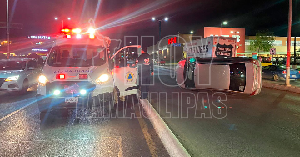 Ciudad Victoria, Tamaulipas. -Tres personas resultaron con lesiones menores esta tarde al registrarse un choque con volcadura en el Boulevard Tamaulipas y calle Michoacán de Ciudad Victoria.