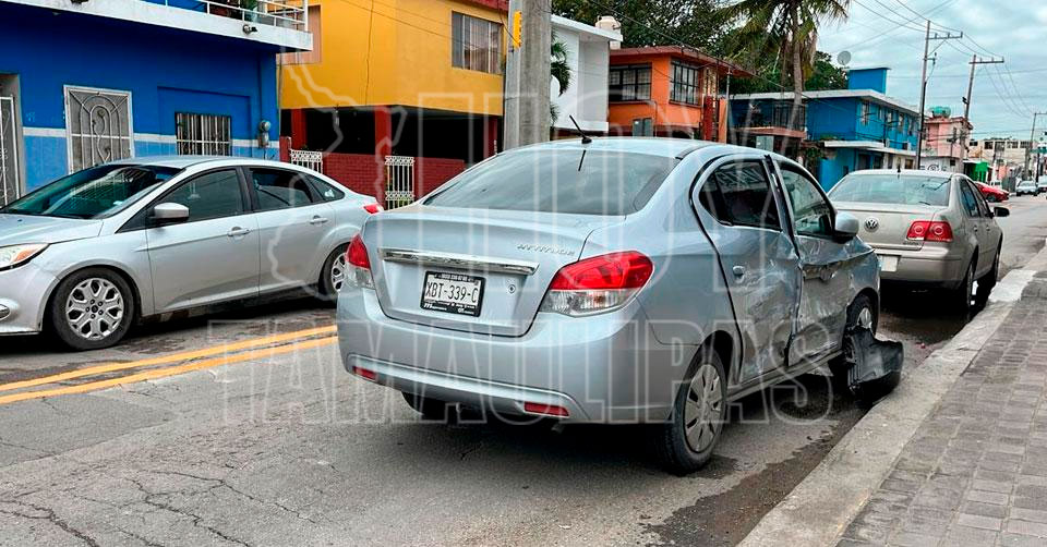 La fuerte colisión vehicular se registró la mañana de este jueves a la altura de la esquina que forman las calles José de Escandón, también conocida como Estrella, y la Benito Juárez en la zona centro de Tampico.