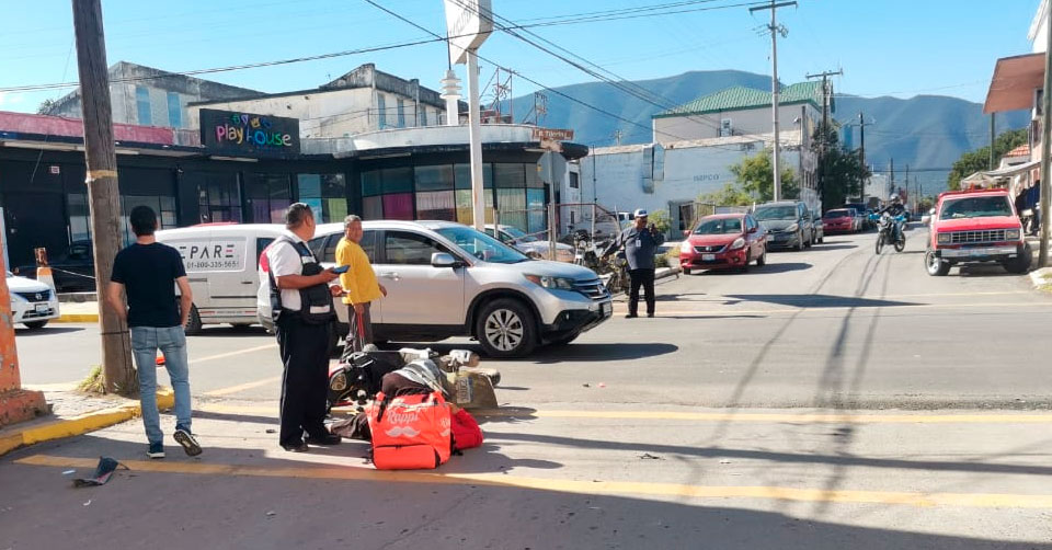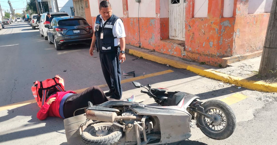 Ciudad Victoria, Tamaulipas. – Una mujer de oficio repartidora de comida resultó lesionada luego de ser derribada de la motoneta que conducía sobre el 8 Allende en Ciudad Victoria.
