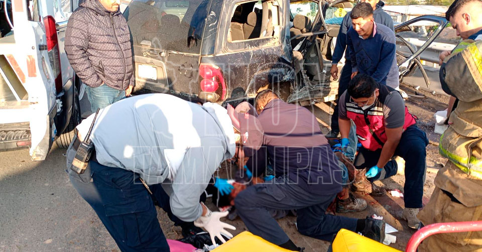 Mujer entre la vida y la muerte tras fuerte accidente en la carretera Reynosa-Río Bravo