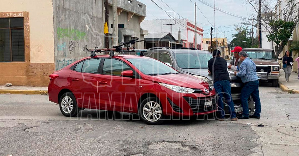 Ciudad Victoria, Tamaulipas. – Un accidente vial registrado esta mañana en el 19 Juárez dejó como saldo cuantiosos daños materiales tras impactarse un auto Sedan y una camioneta tipo familiar.