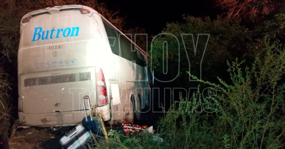 Fue en el kilómetro 128 a la altura del entronque San Fernando-Soto La Marina, cuando el chofer por desconocimiento o dormitada se siguió de frente y colapsó al barranco, quedando al fondo y dejando a más de 20 heridos en el lugar, entre los que se encontraban menores de edad, adultos mayores, donde lamentablemente también perdió la vida una persona del sexo femenino.