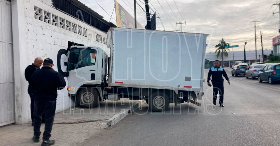 Se le bota cambio a camión y derriba barda de negocio en Tampico