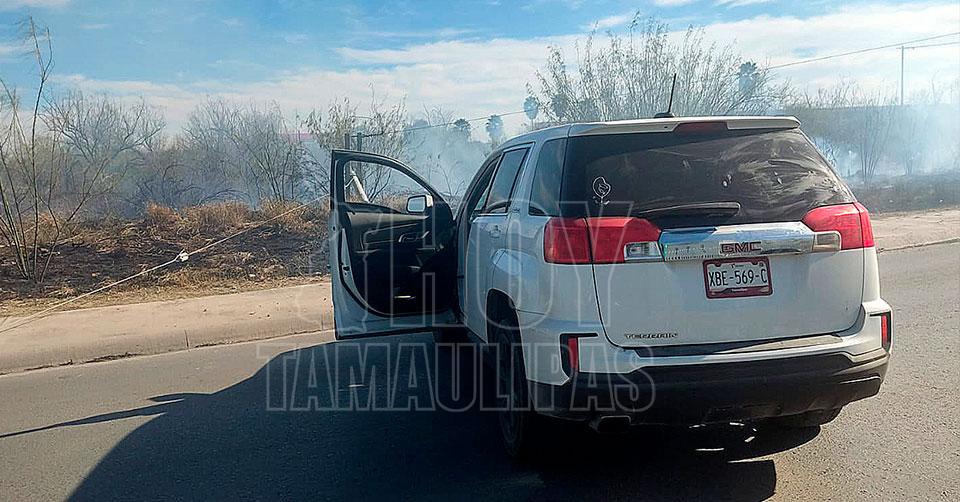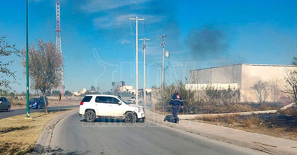 Nuevo Laredo, Tamaulipas. — Una mujer sufrió una fractura de brazo al chocar su camioneta contra un poste de la Comisión Federal de Electricidad (CFE), que cayó junto con su transformador, causó un apagón en el Palacio de Justicia y un incendio en un terreno baldío.