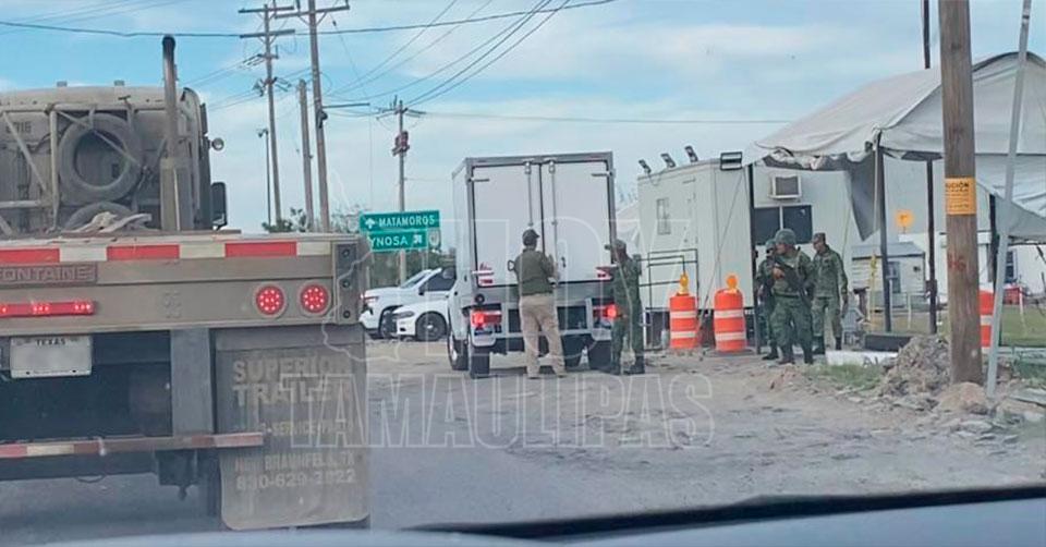 Matamoros, Tamaulipas. - Elementos del Instituto Nacional de Migración y de la Secretaría de la Defensa Nacional, intensificaron los operativos en las carreteras que colindan con las ciudades fronterizas.