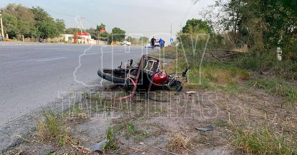 De acuerdo con los primeros datos recabados en el lugar, el motociclista salía del Ejido Laborcitas sin la debida precaución para tratar de incorporarse a los carriles de circulación de la carretera Victoria - Monterrey.