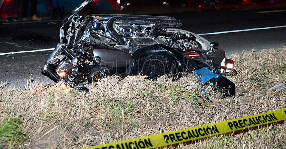 Hidalgo, Tamaulipas. - El presidente del Club de motociclistas Lobos MC, José Rodolfo Garza de 40 años, perdió la vida trágicamente esta noche al estrellar su moto Harley-Davidson contra un automóvil que se zafó de un remolque.