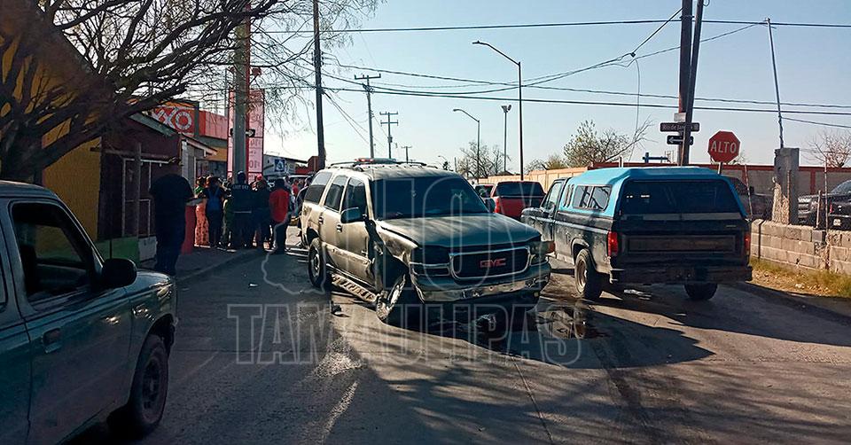 Nuevo Laredo, Tamaulipas. — Un menor de 17 años que conducía a exceso de velocidad y no respetó una señal de alto, provocó un accidente entre una camioneta y un automóvil, que dejó como saldo tres personas lesionadas, una de ellas atropellada, y daños materiales muy cuantiosos, en un crucero de la colonia Buenavista en Nuevo Laredo.