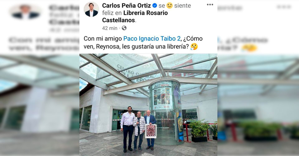 Mientras tanto el alcalde posteo en su página de Facebook una fotografía en donde se le ve en la Ciudad de México en una librería acompañado de Paco Ignacio Taibo 2, en la librería Rosario Castellanos