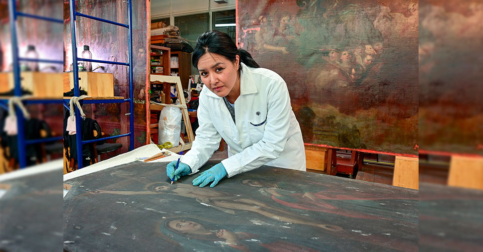 Para subsanar las problemáticas se realizaron acciones de estabilización, como limpieza físico-química, resanes y parches. Las labores se hicieron con materiales orgánicos compatibles con las fábricas virreinales. “Solo en una de las cuatro obras, la cual presentaba deterioro avanzado en el textil, se determinó necesario reentelar”.