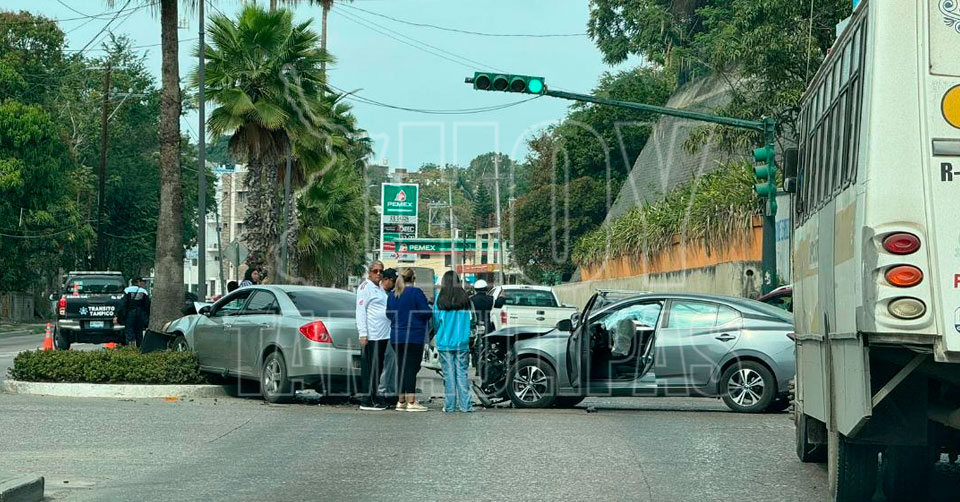 La colisión vehicular se registró la tarde de este viernes, a la altura de la intersección que forman el bulevar Adolfo López Mateos y la calle Lerdo de Tejada en la Colonia Obrera de Tampico, zona que quedó cerrada a la circulación rumbo al norte.