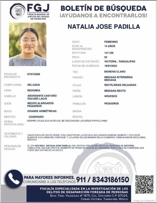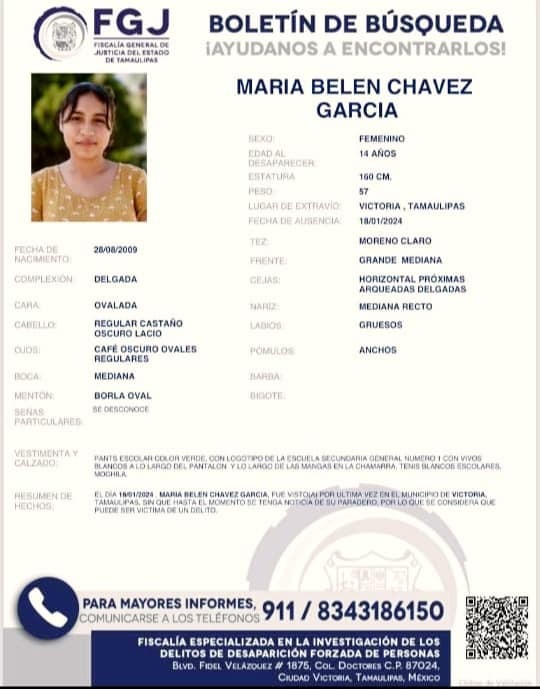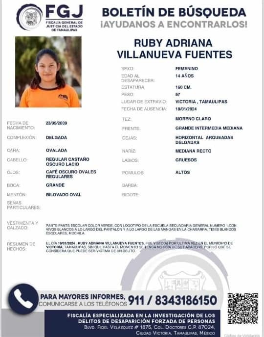Desde el día de ayer la Fiscalía General de Justicia de Tamaulipas emitió las fichas de búsqueda correspondientes, para la localización de las menores de 14 años de edad.