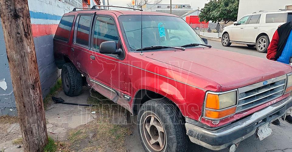 Nuevo Laredo, Tamaulipas. — Un accidente vial se registró en la colonia Guerrero de Nuevo Laredo, cuando una mujer que conducía una camioneta Ford Explorer no respetó la señal de alto y chocó contra un automóvil Ford Taurus, que circulaba con preferencia.