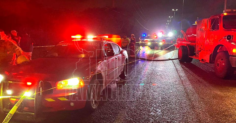 Por desgracia en el sitio perdió la vida una persona, motivo por el que la zona quedó acordonada y cerrado el tramo del Corredor Urbano para que personal de la Fiscalía General de Justicia (FGJ) se encargara de dar fe del cadáver e iniciar la investigación correspondiente.