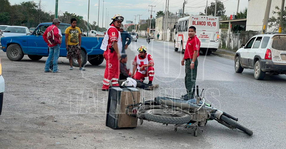 Ciudad Victoria, Tamaulipas. - Un motociclista resultó lesionado al colisionar con una camioneta que le salió a su paso en el Eje Vial Lázaro Cárdenas y calle Michoacán.