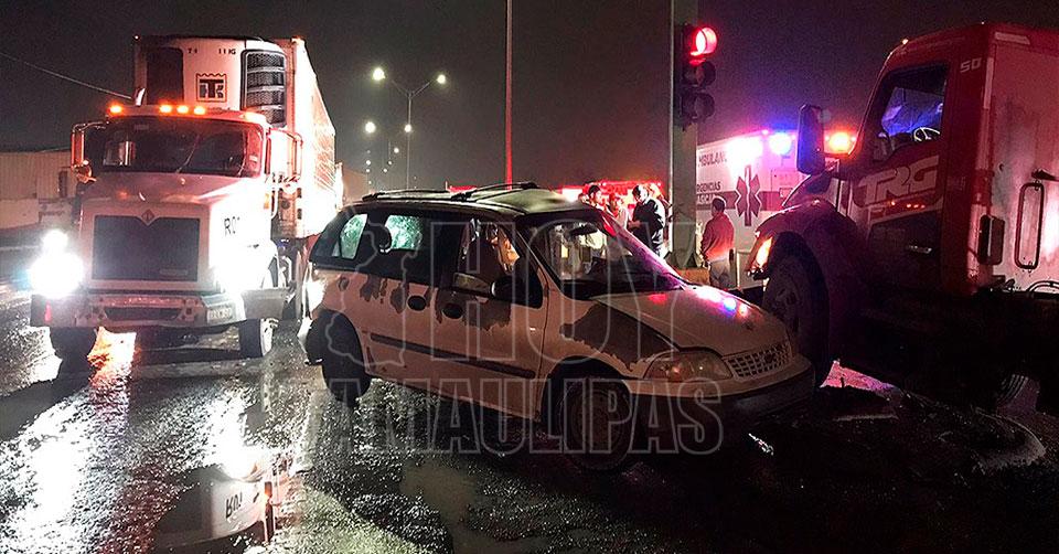 Nuevo Laredo, Tamaulipas. - Un accidente entre dos tráileres y una camioneta en la Carretera Aeropuerto de Nuevo Laredo, dejó como saldo a una mujer herida y daños materiales de consideración.