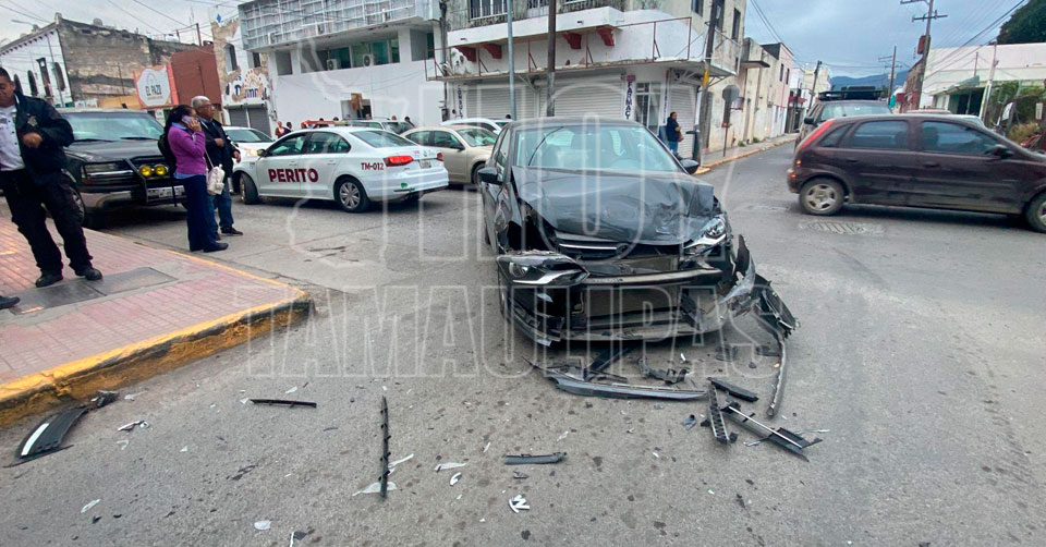 Ciudad Victoria, Tamaulipas. - Un accidente vial registrado esta mañana en el 18 Hidalgo dejó cuantiosos daños como saldo, además de que generó congestionamiento vial en la zona.