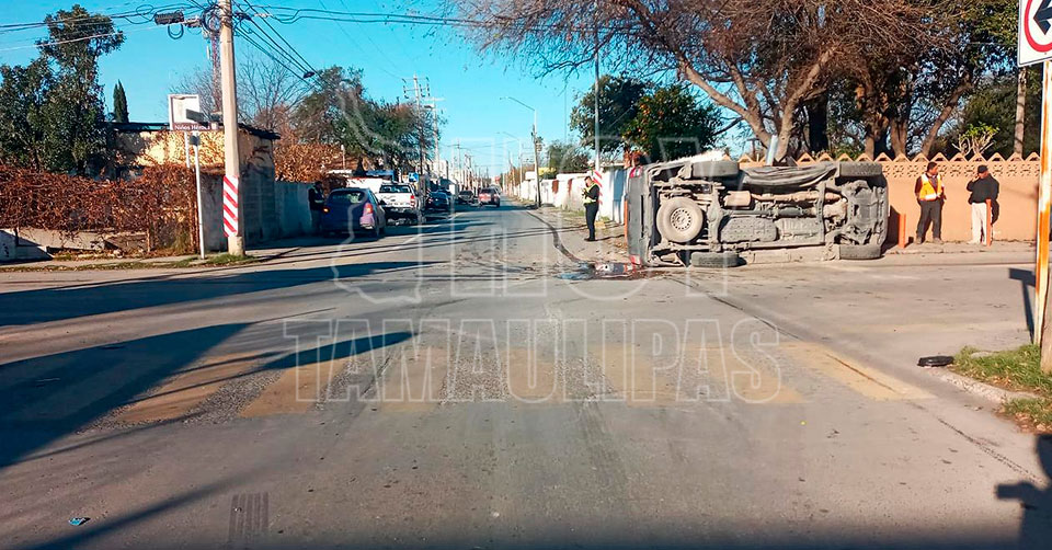 Nuevo Laredo, Tamaulipas. — Un conductor de una camioneta resultó ileso tras volcar su vehículo, luego de que fue impactado por el coche de una mujer que huyó.