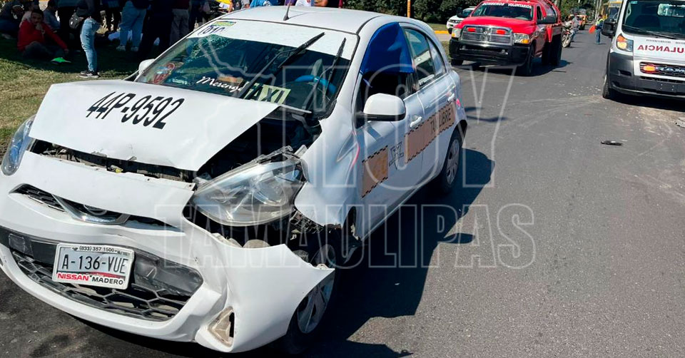 Altamira, Tamaulipas. - Cuatro personas lesionadas, todas ellas ocupantes de un taxi habilitado, y cuantiosos daños materiales, dejó como saldo el fuerte choque ocasionado por el operador del carro de ruta que se impactó por alcance con un carro particular en Altamira.