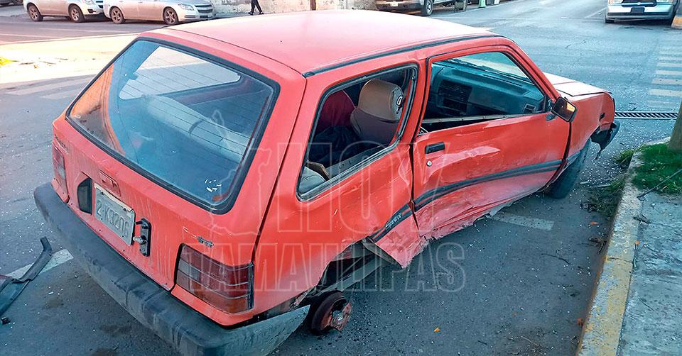 Nuevo Laredo, Tamaulipas. — Luego de provocar un accidente en el sector Centro de Nuevo Laredo, un jovencito abandonó el automóvil que conducía para no pagar los daños al vehículo que chocó, uno de reciente modelo, así como las multas.