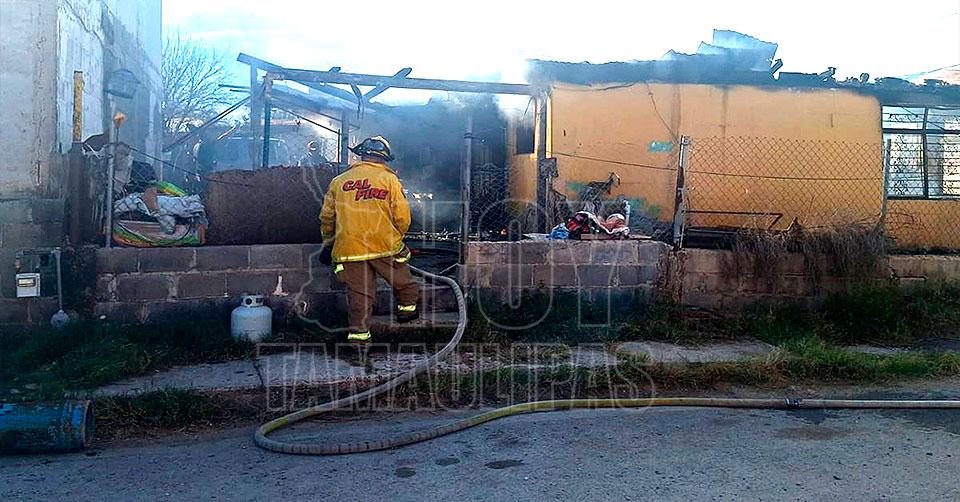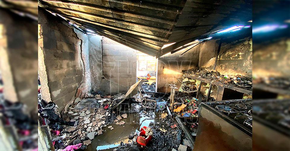Se informó que el fuego se propagó rápidamente por las tres recámaras, el baño y el comedor/cocina de la casa de madera y lámina, arrasando con todo a su paso.