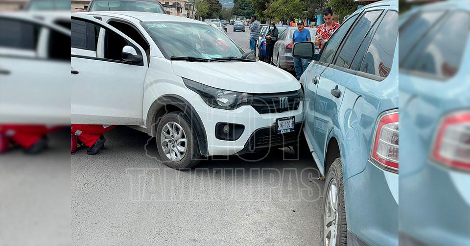 Ciudad Victoria, Tamaulipas. - Un conductor resultó lesionado esta tarde al provocar un accidente vial en el 27 y 28 Juárez en Ciudad Victoria, donde se vieron involucradas tres unidades motrices.