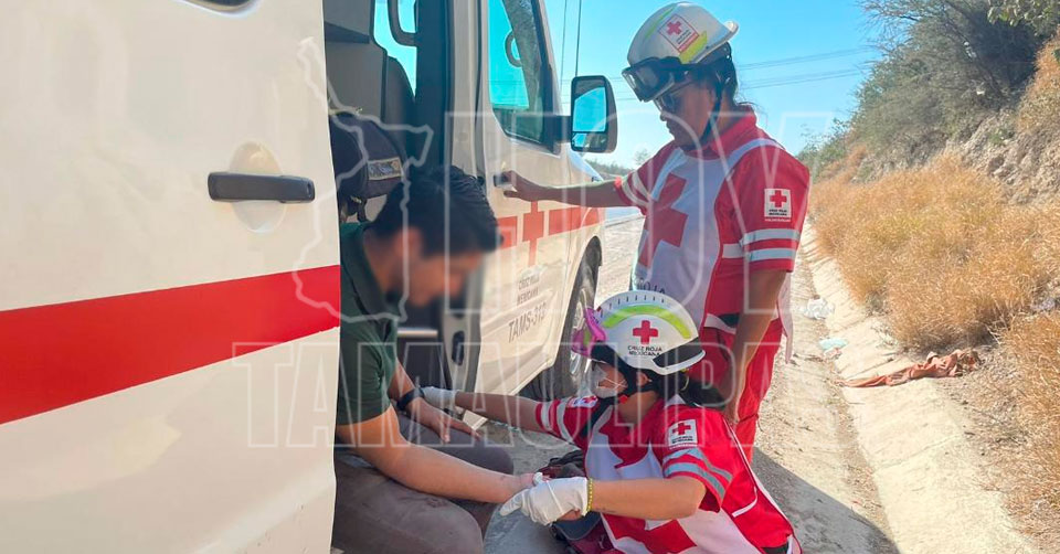 Socorristas de la Cruz Roja brindaron los primeros auxilios a los ocupantes de un auto Hyundai, sin embargo, no fue necesario el traslado a un centro hospitalario.