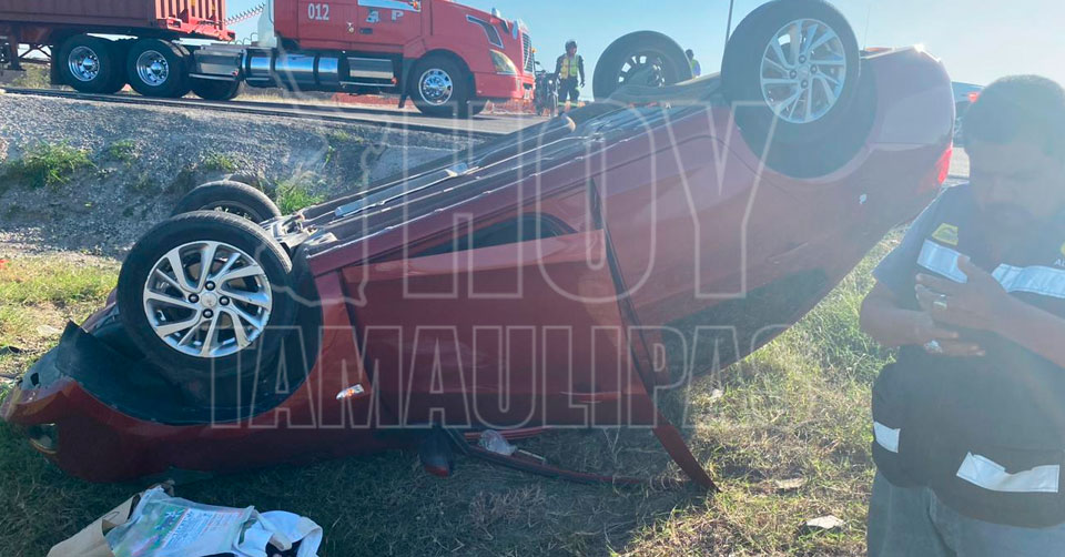 El fuerte percance vial ocurrió la tarde de este sábado en la carretera Tampico-Mante a la altura del entronque con el bulevar que conduce al Parque Industrial de Altamira.