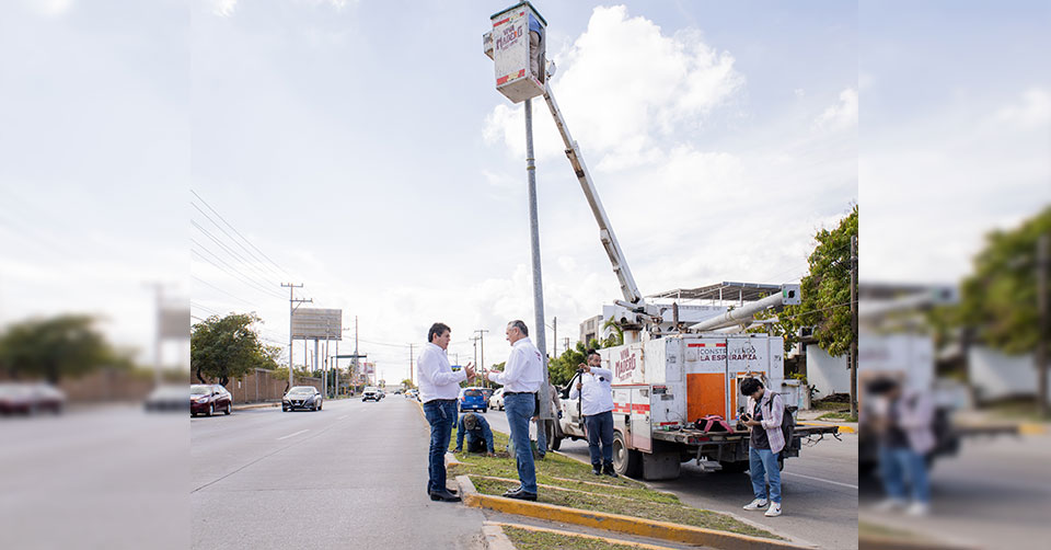 Ciudad Madero, Tamaulipas. - Al ser la tranquilidad de las familias maderenses un eje prioritario en el Gobierno del alcalde Adrián Oseguera Kernion, se redoblan acciones para dar mantenimiento a más luminarias de la urbe petrolera.