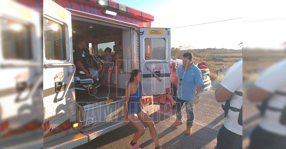 Los paramédicos atendieron a un total de siete personas, entre ellas tres mujeres, una de las cuales se encontraba inconsciente, así como cuatro menores de los cuales resaltó un bebé de apenas seis meses de nacido, siendo todos canalizados a un hospital particular y otro al General de Tampico, mientras que del accidente tomó conocimiento personal de tránsito Altamira.