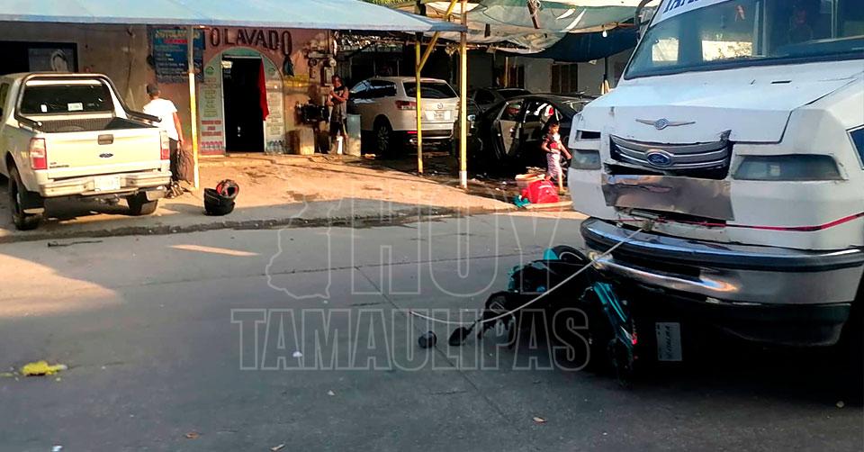 Microbús embiste a mujer que viajaba en moto en Tampico; resultó grave