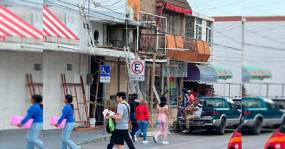 Mientras tanto, trabajadores ya tumbaron una parte de la marquesina que tenía daños sobre la calle Carranza.