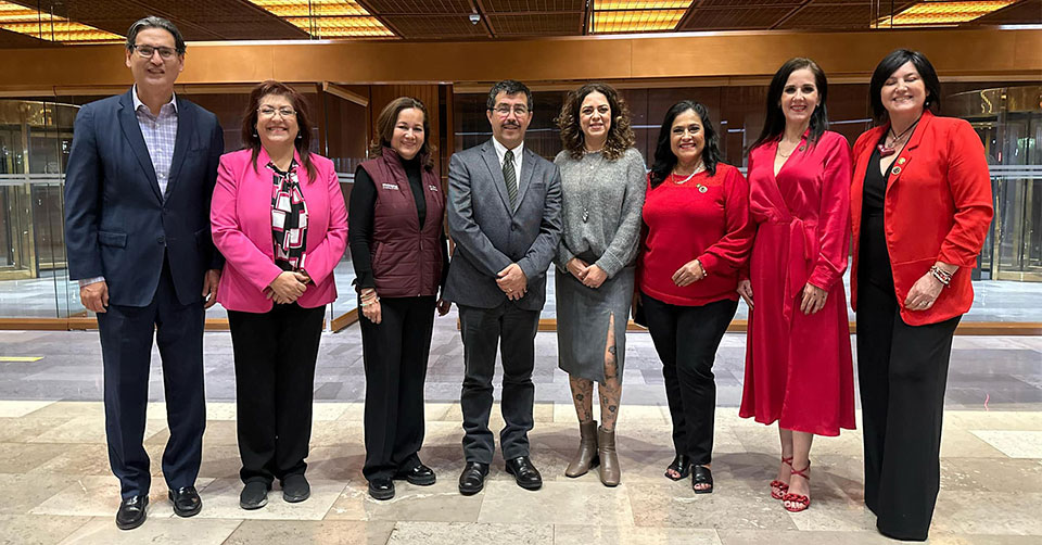 El diputado federal Erasmo González Robledo, presidente de la comisión legislativa, recibió al rector Dámaso Anaya en las instalaciones del palacio de San Lázaro en la Ciudad de México, acompañado por la Lic. Graciela Báez Ricárdez, secretaria general de la Cámara de Diputados, e integrantes de la legislatura que representan a distintos distritos de Tamaulipas.