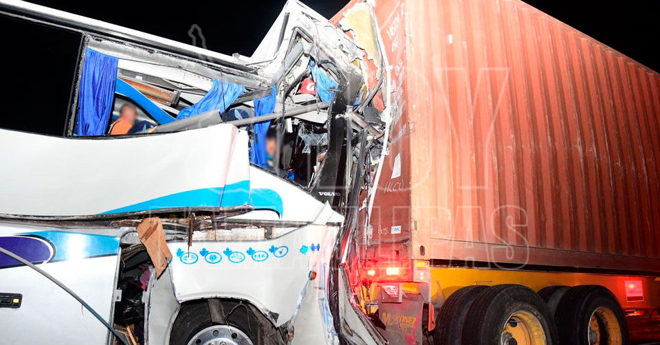 El accidente se originó cuando un tráiler doblemente articulado chocó con una vaca y detuvo su marcha sobre la carretera, sin embargo, el chofer del autobús no se percató y se impactó en la parte trasera.