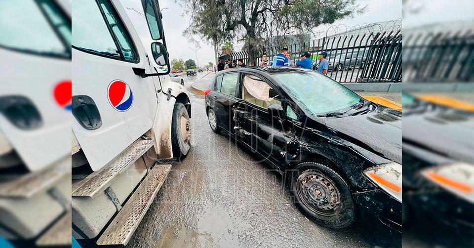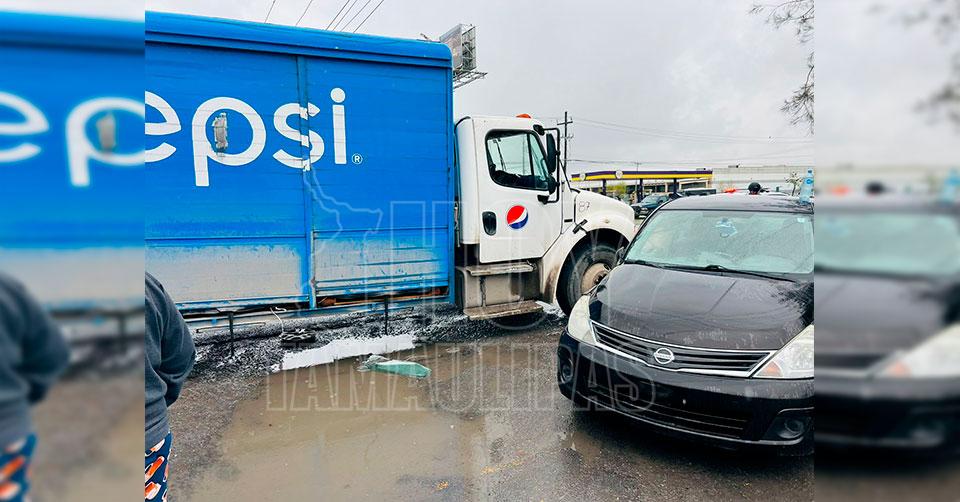 El percance se suscitó cuando la mujer circulaba de poniente a oriente sobre Lauro Villar y se disponía a dar vuelta a su izquierda para ingresar a la calle Norte Seis, cuando fue chocada de lleno en su costado derecho por un camión de la empresa refresquera Pepsi.