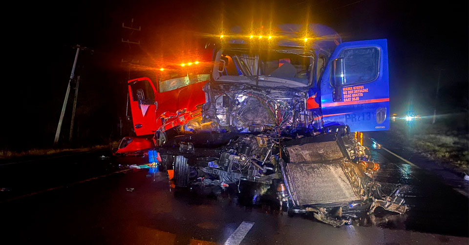 Personal de Apoyo Carretero perteneciente a Estación Segura El Barretal coadyuva en las labores de auxilio vial y brinda seguridad perimetral tras el impacto entre dos unidades pesadas registrado cerca del Ejido Santa Engracia.