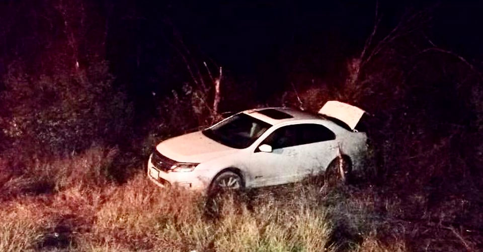 San Fernando, Tamaulipas. - Un bache la lluvia y el exceso de velocidad, fueron el factor para que un residente de Matamoros terminara volcando en el kilómetro 133 de la carretera Victoria-Matamoros, a la altura de San Fernando.