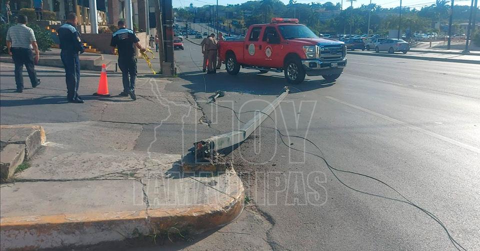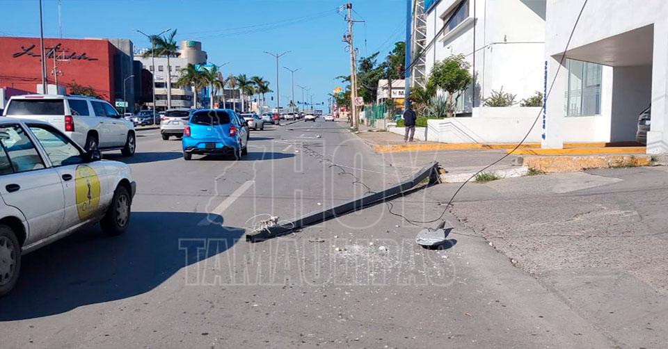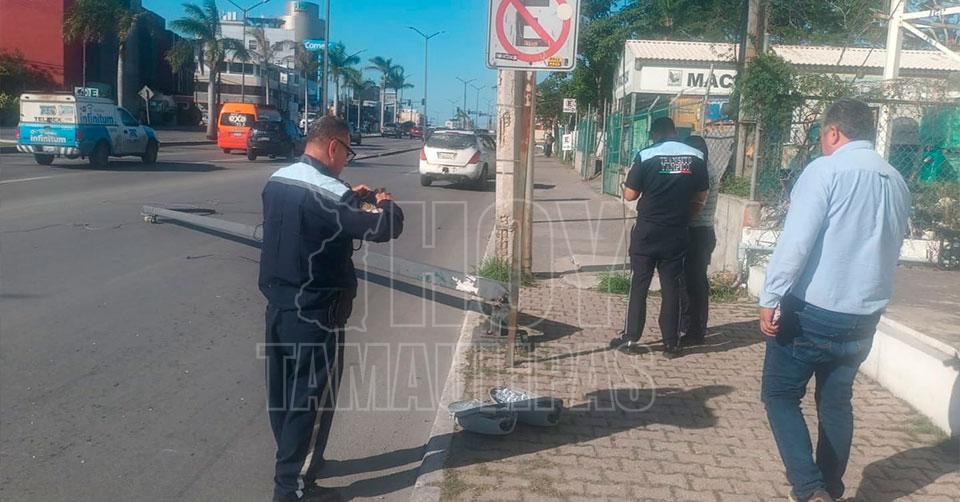 Cafre del volante derriba postes en avenida de Tampico y huye