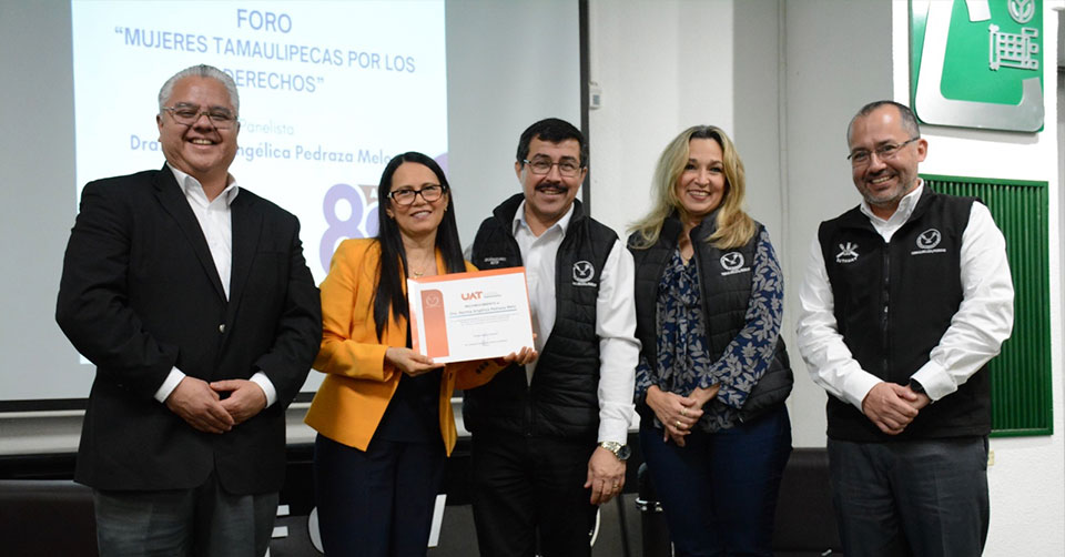 Ciudad Victoria, Tamaulipas. - Con la presencia del rector Dámaso Anaya Alvarado, la Universidad Autónoma de Tamaulipas (UAT) inició el programa Agenda 8M con el primer foro “Mujeres tamaulipecas por los derechos”, que tuvo como panelista a la Dra. Norma Angélica Pedraza Melo, contralora gubernamental y catedrática de esta casa de estudios.