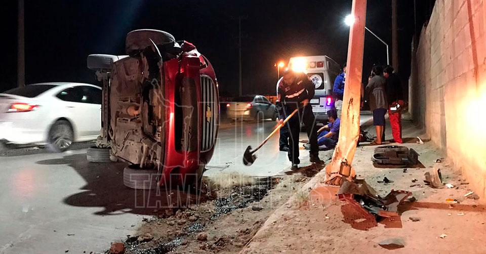 Nuevo Laredo, Tamaulipas. — Un conductor ebrio chocó su vehículo contra un poste del alumbrado público en el Bulevar Paula Riojas, en Nuevo Laredo y luego se volcó, resultando ileso de milagro.